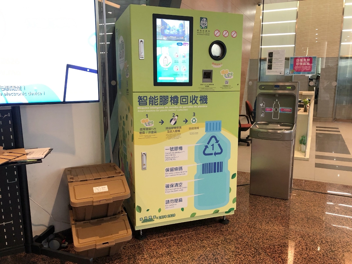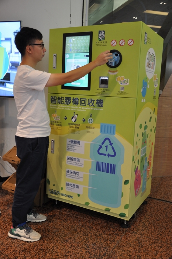 环境保护局于本月底会陆续在澳门各区设置胶樽回收机,提供更多回收胶樽的途径,鼓励公众实践资源垃圾分类回收。首阶段将设置于环境保护局大堂、两个环保加Fun站(青洲及石排湾)(试运中),并将持续增加胶樽回收机的设置点。同时,胶樽回收机会纳入“环保Fun”积分奖励计划中。