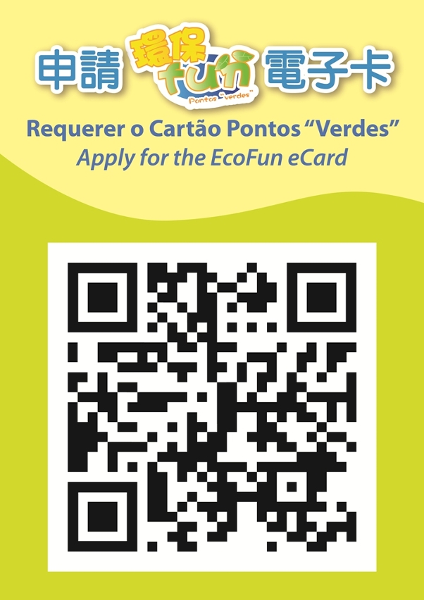 为方便公众申请成为“环保Fun”会员,环保局已推出“环保Fun”电子卡网上即时申请服务,公众可透过“环保Fun”网页(http://www.dspa.gov.mo/ecofunweb/tc/0application.aspx)或以流动装置扫描QR Code(详见附图) 进行登记,将即时获得“环保Fun”会员电子卡,已登记的“环保Fun”会员亦可透过上述途径获取电子卡供使用。