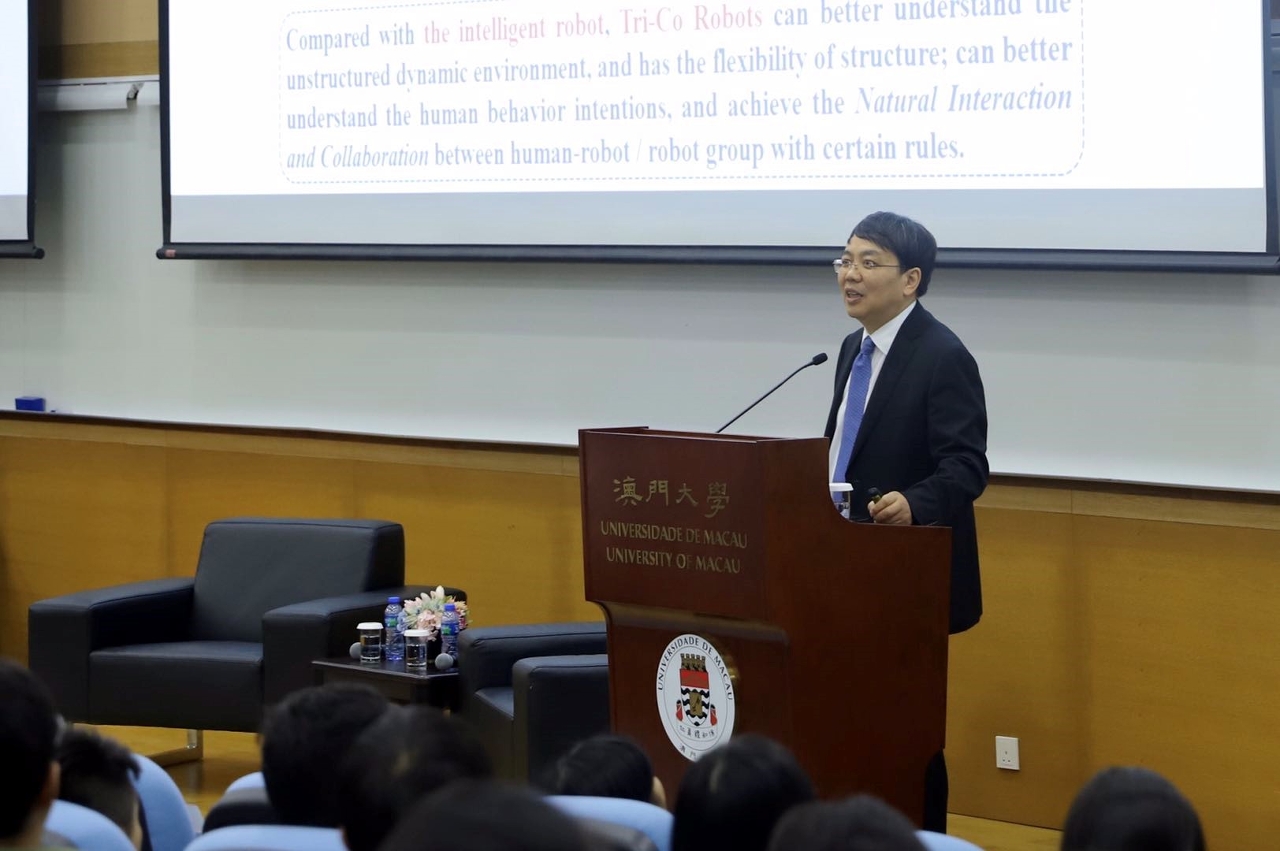 澳门大学今(8)日举行“大学讲坛"讲座,由机械电子工程专家丁汉以“机器人的未来:共融机器人”为题发表演说,介绍机器人技术的最新发展状况,以及机器人的加工系统、数据引擎与其发展趋势。