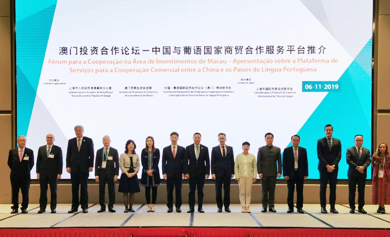 由上海市人民政府港澳事务办公室、澳门贸易投资促进局、中葡论坛常设秘书处合办的“澳门投资合作论坛—中国与葡语国家商贸合作服务平台推介”活动于11月6日下午在上海国展宝龙丽筠酒店举行, 澳门特区政府经济财政司司长梁维特、中央政府驻澳门联络办公室秘书长王新东、葡萄牙驻上海总领事伊萨瓦等嘉宾逾200人出席, 重点向来自世界各地的与会嘉宾推介澳门作为“中国与葡语国家商贸合作服务平台”的定位和优势。活动期间, 场内还安排了4个合作项目签署, 内容涉及金融、农业、葡语国家产品、投资等领域。