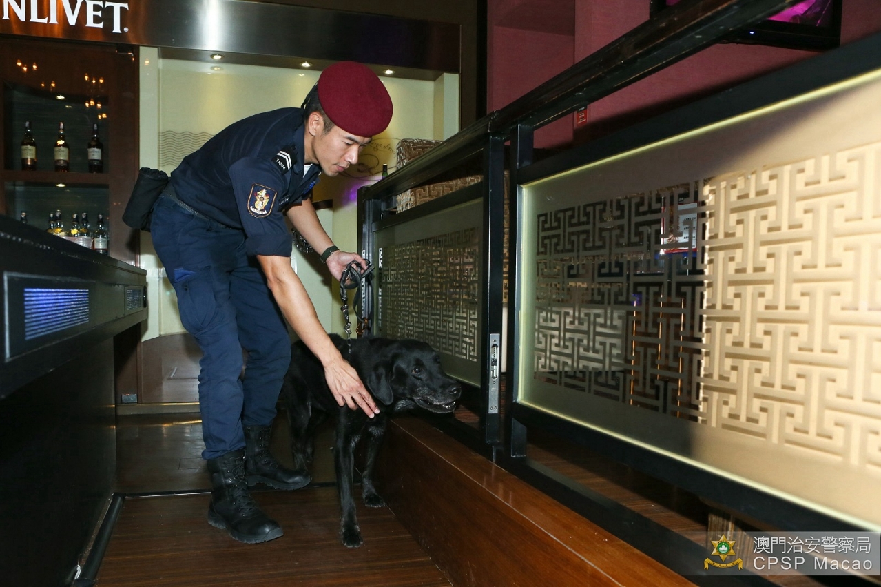 在警察总局统筹下,治安警察局展开「雷霆2019」行动,确保本澳社会安宁及公共秩序安全。于11月7日至8日凌晨,治安警察局海岛警务厅、情报厅及特警队警犬组共派出20名人员,分别于路氹金光大道一带截查可疑人士,以及于本澳各区巡查多间卡拉OK及酒吧,打击各种不法行为。