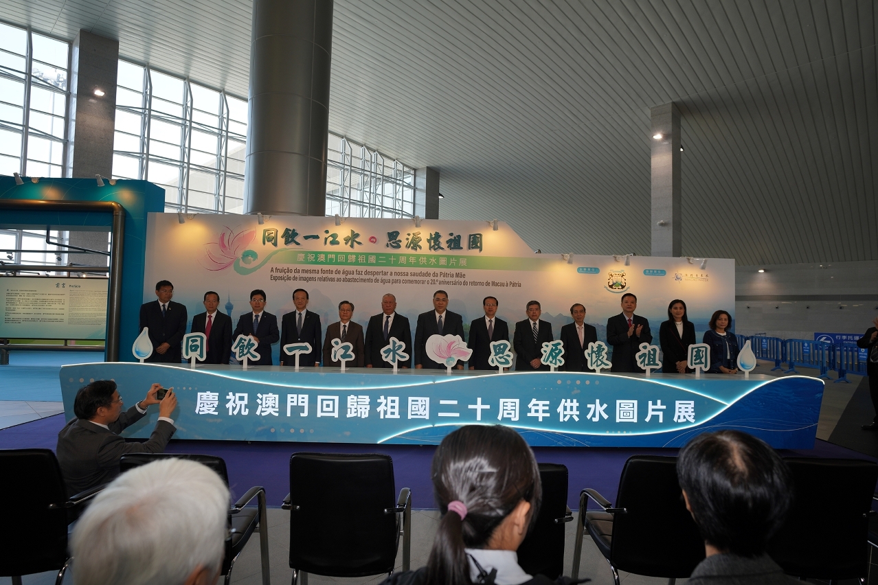 由海事及水务局主办、澳门自来水股份有限公司协办的“同饮一江水‧思源怀祖国”庆祝澳门回归祖国二十周年供水图片展,于2019年11月19日在氹仔客运码头举行。行政长官崔世安、政协全国委员会副主席何厚铧、中央政府驻澳门特区联络办公室主任傅自应、立法会主席高开贤、运输工务司司长罗立文等出席了展览的开幕式。