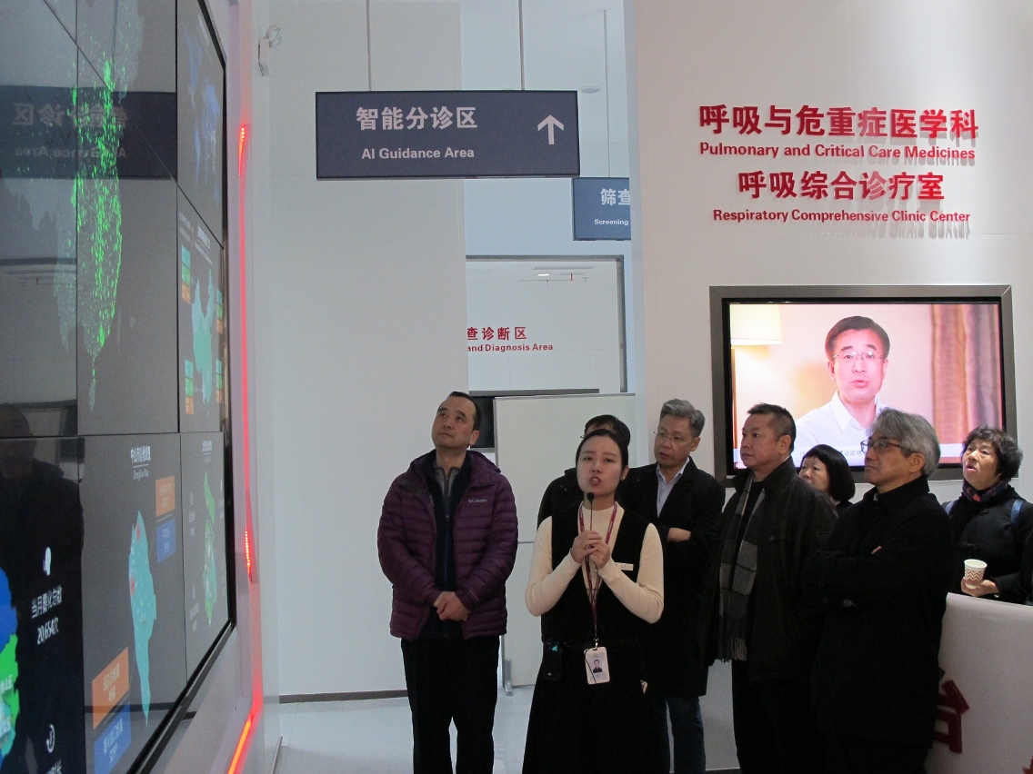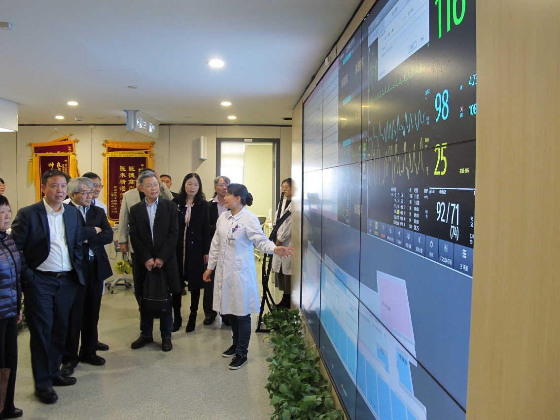 考察团其后参观了江苏省人民医院,并与该院医护人员进行座谈会作深入交流。该院赵俊院长介绍,该院是南京医科大学的临床教学基地,内设南医大第一临床医学院;该院亦是江苏省临床医学教育研究所依托单位,是国家住院医师规范化培训示范基地,更是全国首批获准开展人类精子库和辅助生育技术的单位,拥有国家重点学科——心血管病学科、及卫生部重点实验室——活体肝脏移植,也是国家药物临床试验机构、听力国际中国分中心。该院新大楼于2018年启用,引入智慧医院纟统——智慧病房作入试点,设有远程会诊系统、人脸识别系统、智能医疗服务机械人、床边智能交互系统、患者实时定位系统、生命体征智能采集系统、家属远程关爱系统等设备,为患者提供人性化、智能化服务,为医务人员提供方便、智能化操作,为医院提供一体化、智能化的管理平台。考察团先后参观了智慧病房、病理学部、门诊部及药房等,深入了解智慧医疗系统在临床工作的应用。