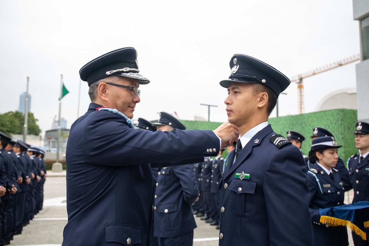 就职仪式在妈阁海关总部举行,由黄有力关长主持,海关领导及主管人员出席。各晋升人员首先进行宣誓,再由黄有力关长、黄文忠副关长、周见霭助理关长及黄伟文助理关长为各人戴上新职位肩章,正式晋升为首席关员。仪式上亦向在晋升培训课程中总成绩排名第一之学员颁发奖项。