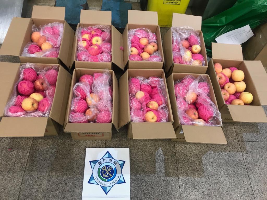 另外本月6日,一辆粤澳两地牌私家车经关闸口岸车道入境时,经海关风险管理系统的预警分析,判断为需接受详细检查,海关关员检查私家车后排座位及车尾箱时,发现9箱未经检疫的苹果,合共80公斤。海关根据第40/2004号行政法规《卫生检疫及植物检疫》对涉案司机作出起诉,一经判罚,可科处货物等值但不少于澳门币1千元的罚款,而被查获的货物亦会宣告归澳门特别行政区所有。