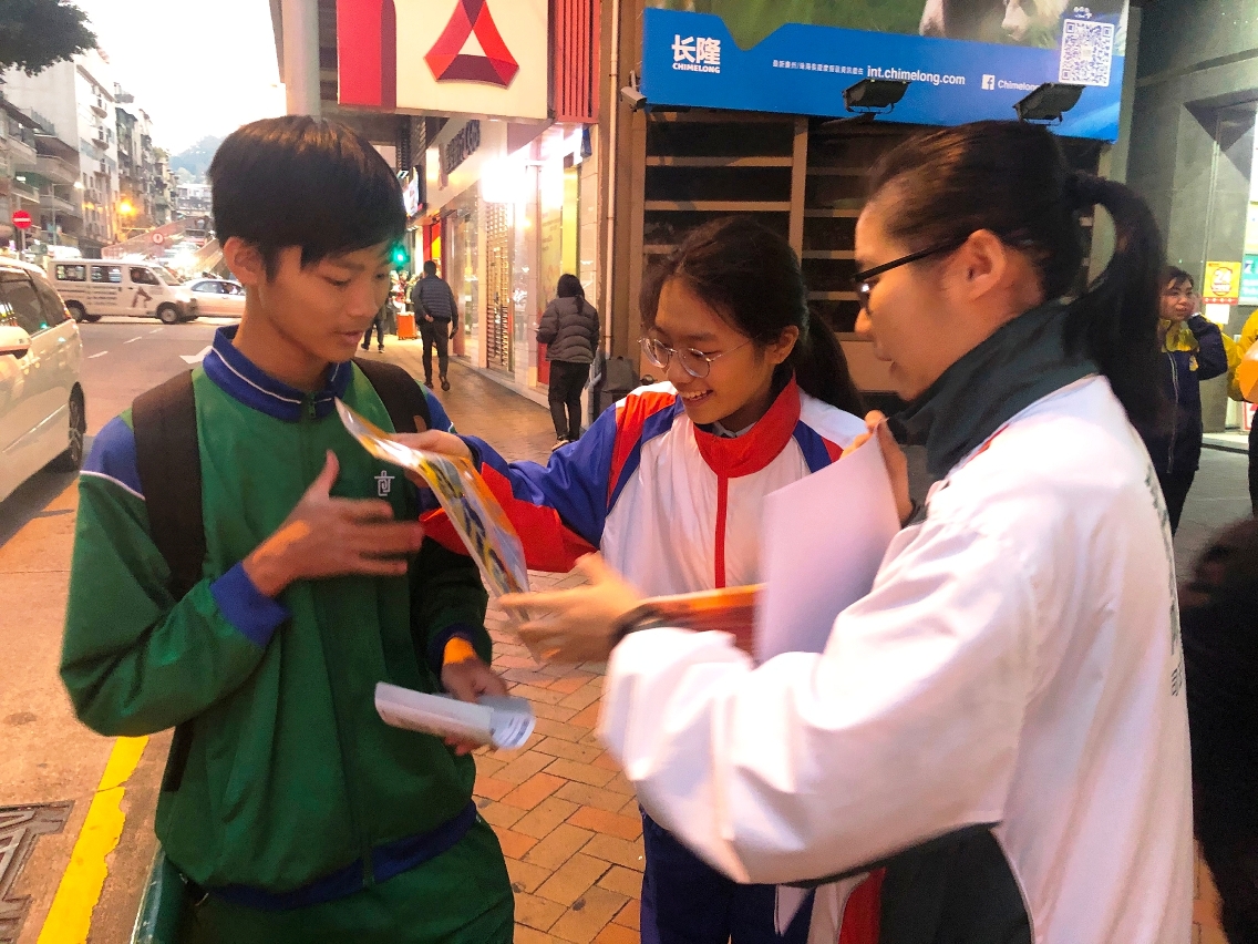 鉴于回归纪念日、圣诞节及元旦假期将至,不少青少年会外出参与庆祝活动,为加强他们的防罪意识,司警局关注少年组与培正中学、粤华中学、陈瑞祺永援中学、岭南中学、高美士中葡中学、利玛窦中学、东南学校、庇道学校及鲍思高粤华小学合作,以及组织“社区安全青年领袖”及“灭罪小先锋”学员在中区一带展开“警校联合防罪巡查”,沿途向青少年派发防罪宣传单张,并向他们讲解最常遇到的犯罪及预防方法,叮嘱他们参与节日派对时要提高警觉和保护好自己,避免受到犯罪侵害,同时鼓励他们勇于举报犯罪。