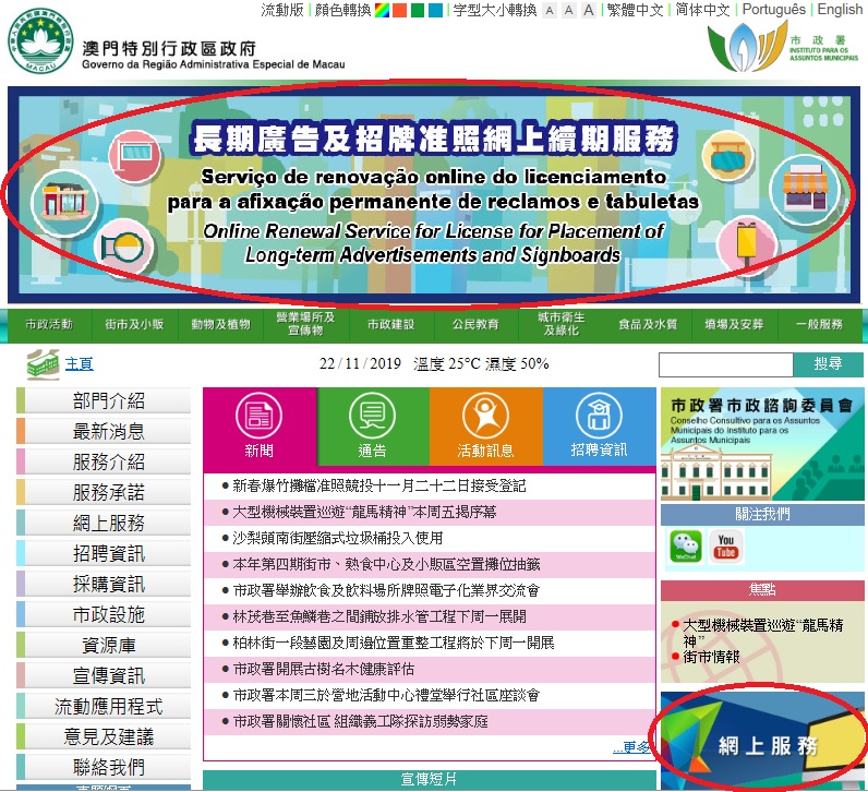 市政署秉持以民为本的精神,持续优化广告准照之行政手续,今年正式推出“长期广告及招牌准照-网上续期”服务,方便持牌人透过网上系统续期,不受办公时间限制且无须亲临服务中心,并可自行列印相关之续期准照。