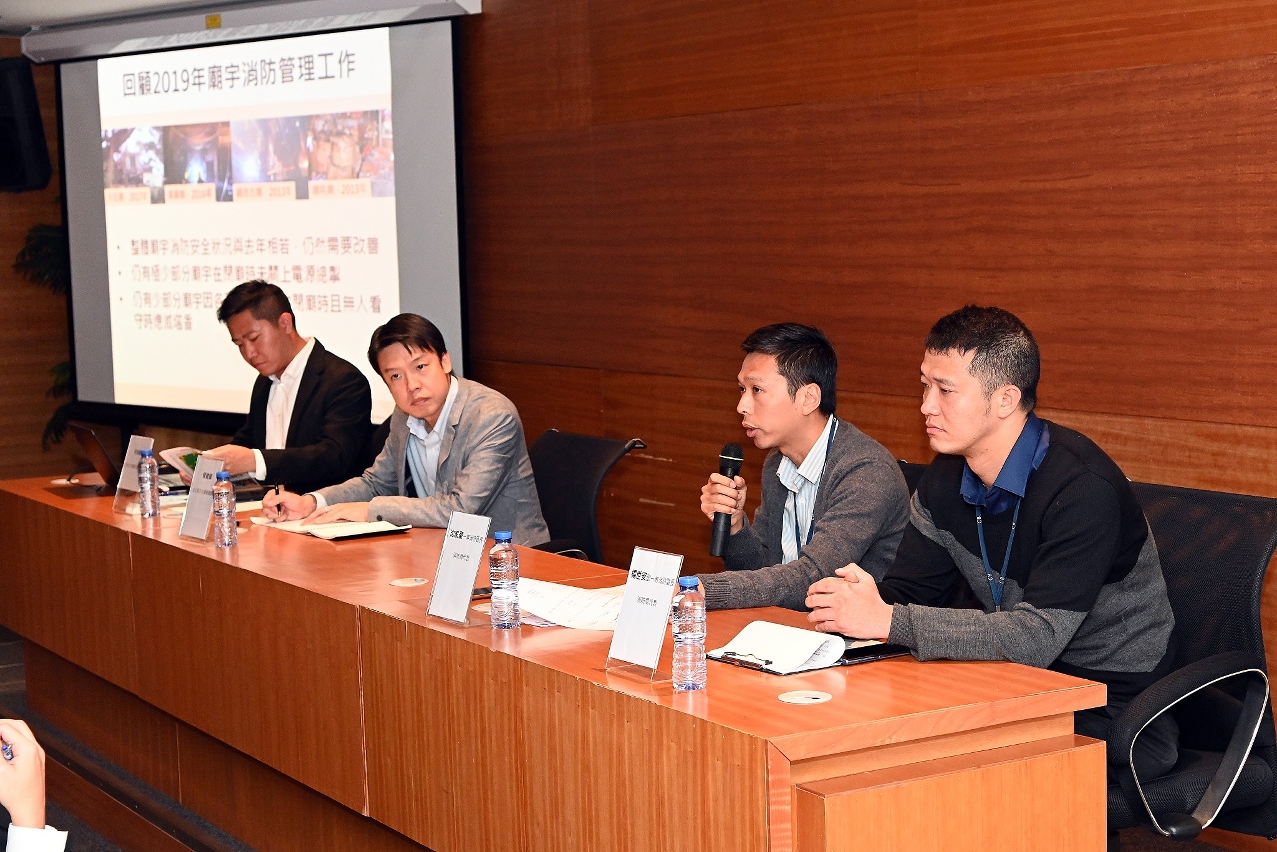 此外,消防局海岛行动及救护代处长一等消防区长沈家豪、防火厅副一等消防区长杨世安指消防局已计对各庙宇制定消防预案,提升事故发生时的应变能力,并向现场各庙宇代表讲解消防局在新年期间的部署安排,同时呼吁各庙宇应继续落实执行文化局提倡的庙宇安全措施,注意避免在庙内堆积过量杂物,并提醒庙宇管理者在香火旺盛时须格外注意防火安全。