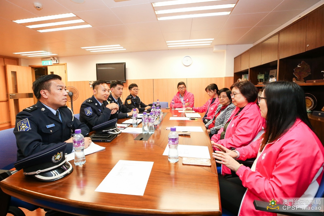 治安警察局于1月10日下午拜访澳门妇女联合总会,与胡婉萍及杨淑贤副监事长等多位代表进行冬防会议。