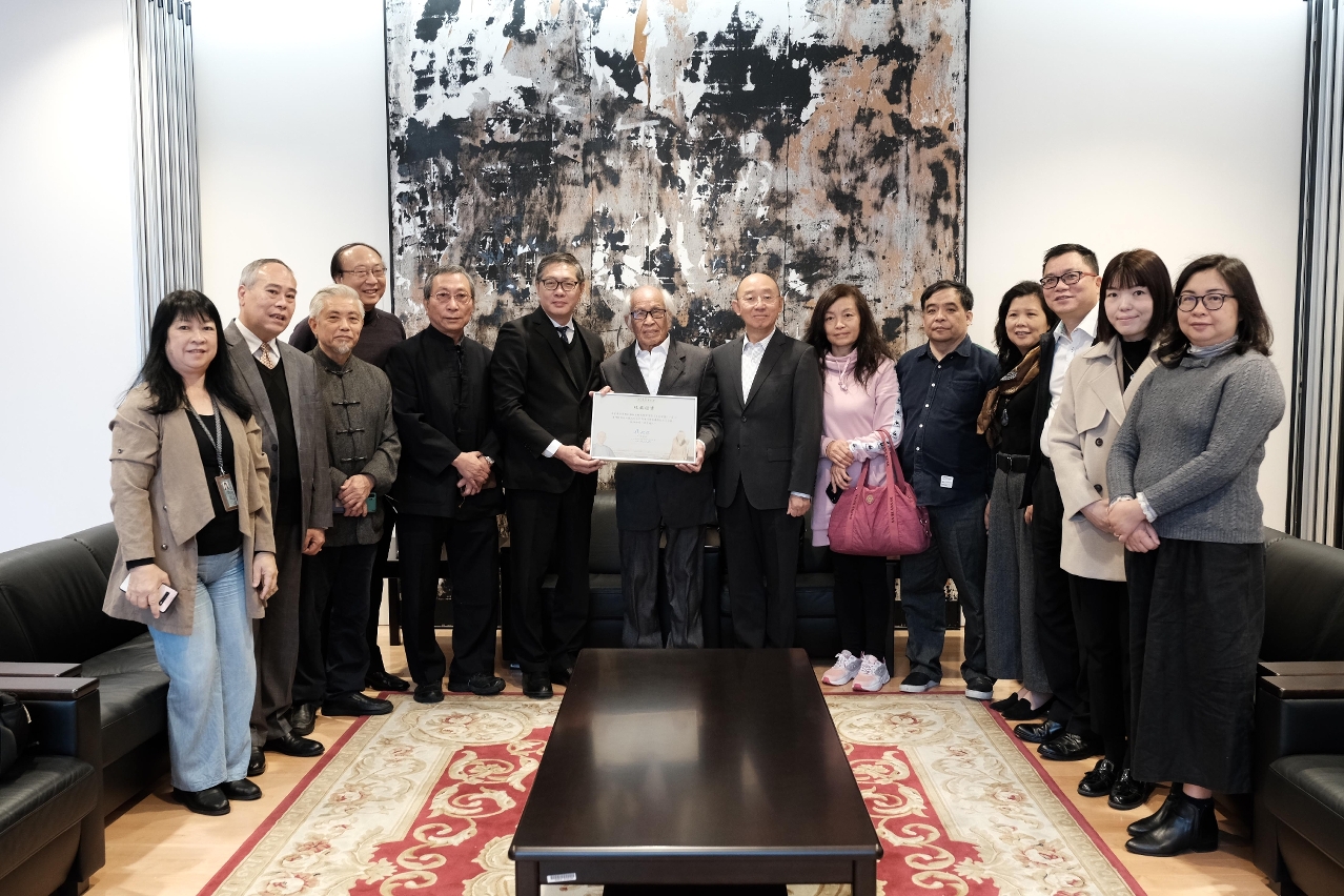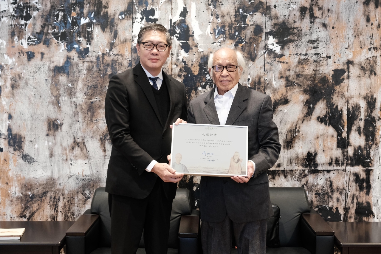 中国知名雕塑家曹崇恩今日(1月13日)向文化局捐赠所创作的雕塑作品《九九莲还》,并由澳门艺术博物馆收藏。捐赠仪式在该馆举行,由文化局副局长陈继春向作者颁发捐赠证书,并致以衷心感谢。文博厅代厅长林颖娜、曹崇恩家属出席捐赠仪式,澳门日报社长陆波、书画家杨大名、收藏家赵维富、吴海等亦到贺,气氛热闹。