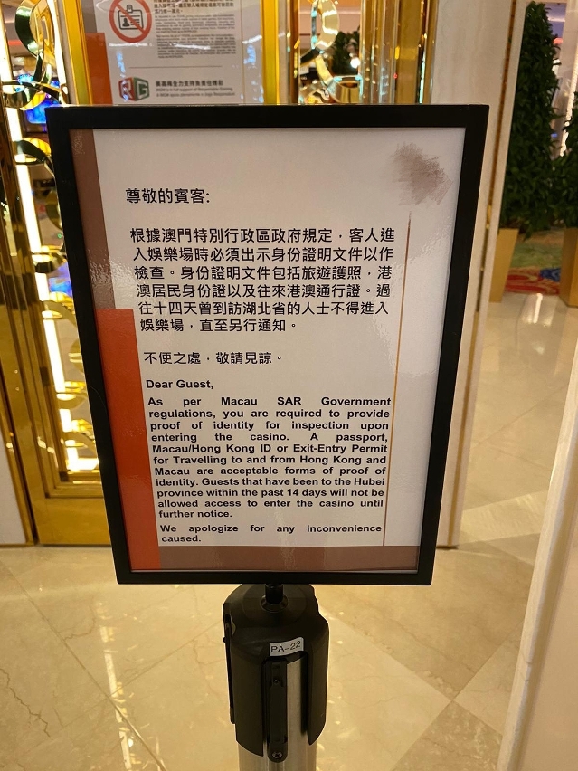 《特区公报》今(27)日刊登第26/2020号行政长官批示,自今(27)日零时零分起,限制所有在入境澳门特区前14日内曾经到过湖北省的人士进入娱乐场。
