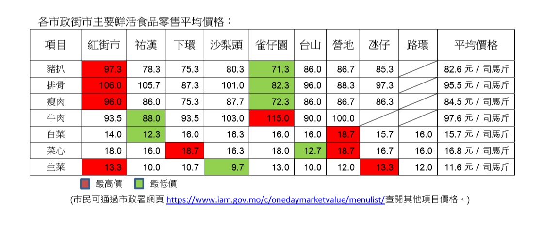 (市民可通过市政署网页https://www.iam.gov.mo/c/onedaymarketvalue/menulist/查阅其他项目价格。)