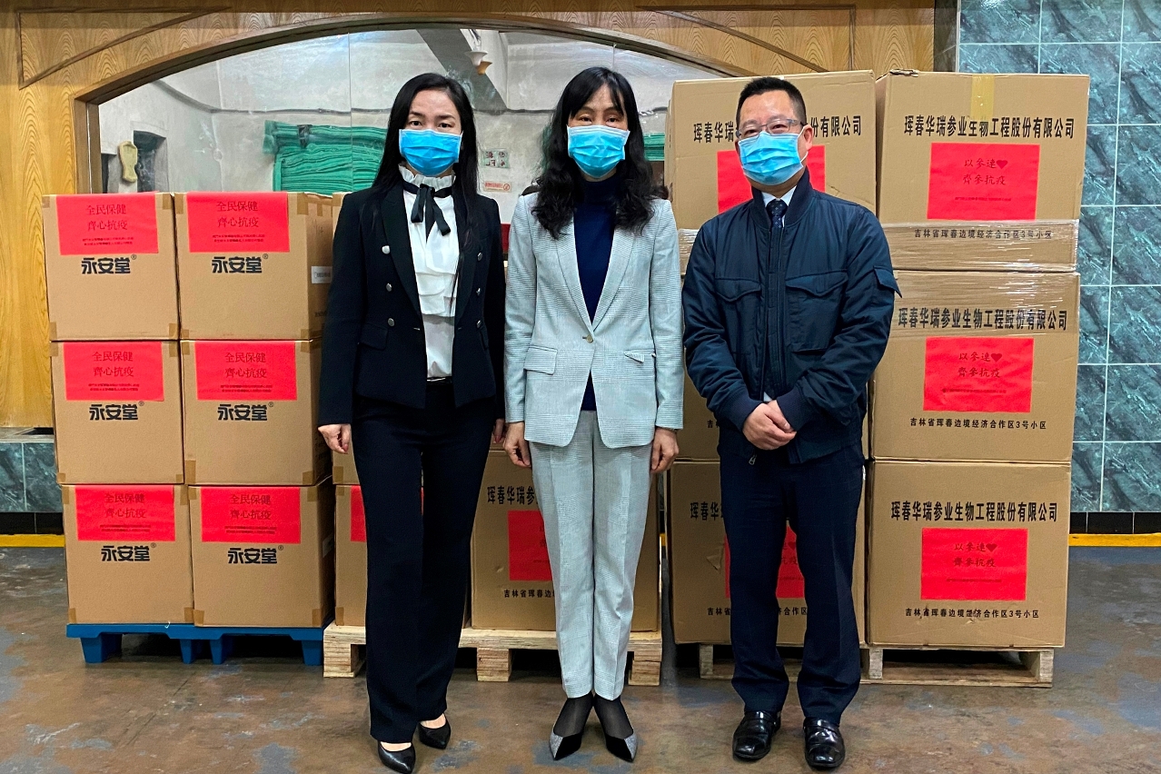 澳门华元堂药业有限公司向政府捐赠了25 箱花青素胶囊(96 瓶)、3箱中华一号胶囊(96瓶)和2箱破壁灵芝孢子粉胶囊(96瓶);澳门永安制药厂有限公司捐赠了500 盒人参精人参浸膏。特区政府感谢澳门华元堂药业有限公司和澳门永安制药厂有限公司热心捐赠,关怀社会,为抗疫出力量。