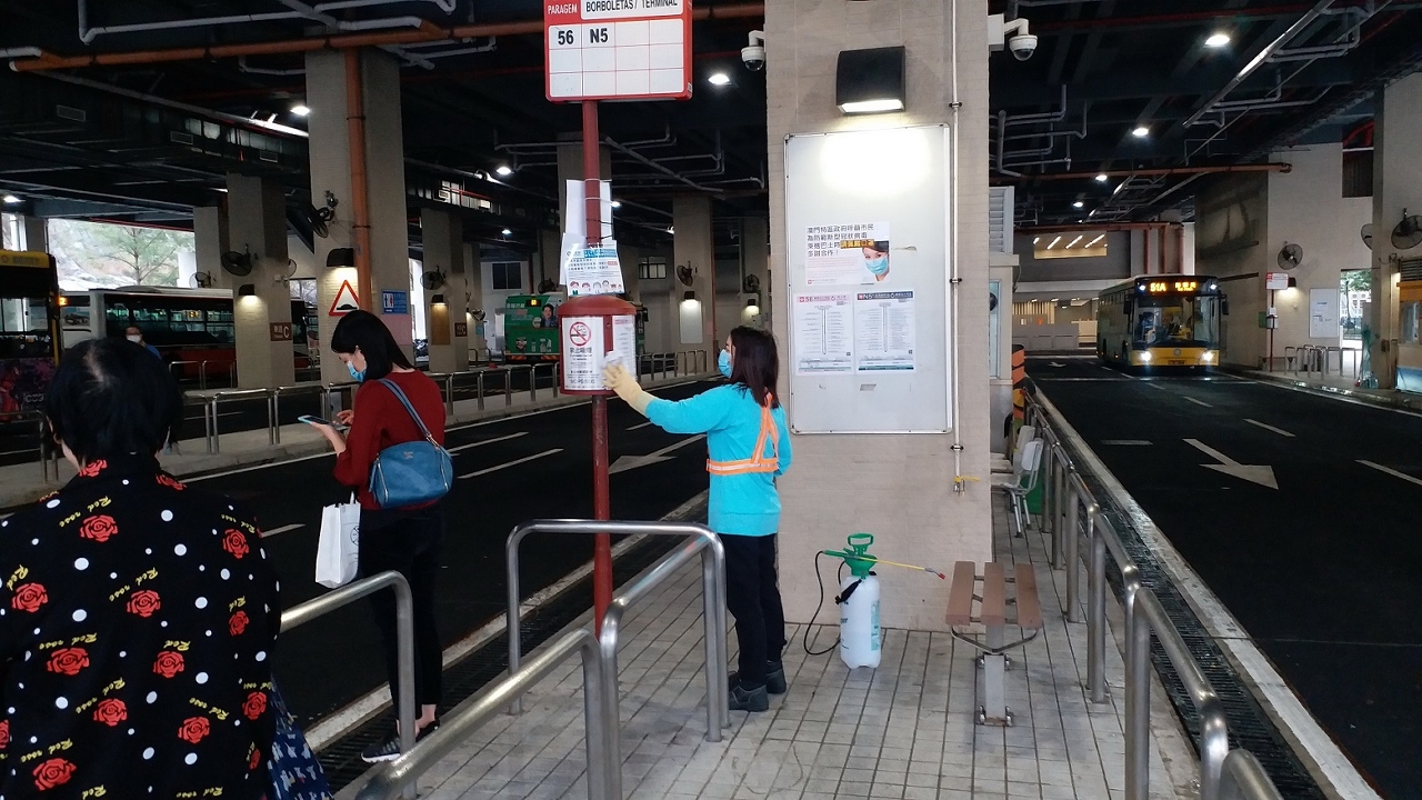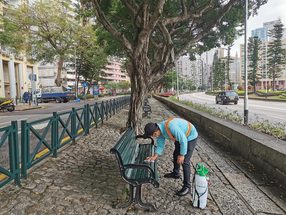为减低病毒在社区传播的风险,市政署在环境卫生工作上采取多项措施,包括持续协调澳门清洁专营有限公司以稀释漂白水清洗本澳各出入境口岸、巴士站、的士站、公共街道、广场及小贩区等;此外,安排清洁服务公司以专用喷雾器,将经稀释的漂白水喷洒于渠道口、行人道栏杆,以及清抹行人天桥扶手梯、巴士站候车亭、遮雨棚、椅子及乘车信息牌等设施,以确保市民大众在使用相关公共设施时得到安全及卫生的保障,尽量减低病毒传播的风险。