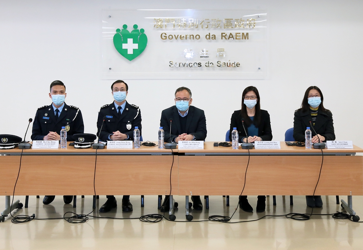 新型冠状病毒感染应变协调中心(下称应变协调中心)于今(18)日举行例行记者会,仁伯爵综合医院李伟成医务主任、疾病预防控制中心传染病协调员梁亦好医生、旅游局执照及监察厅陈露厅长、治安警察局居留及逗留厅黄剑虹代厅长、治安警察局行动及通讯处马超雄处长共同会见传媒。