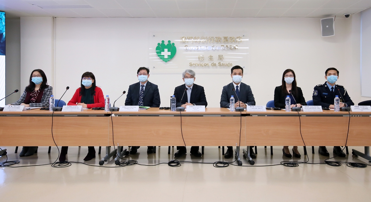 新型冠状病毒感染应变协调中心(下称应变协调中心)于今(27)日举行例行记者会,卫生局李展润局长、教育暨青年局老柏生局长、市政署市政管理委员会杜淑仪委员、仁伯爵综合医院罗奕龙医务主任、旅游局执照及监察厅陈露厅长、治安警察局公共关系处李德辉处长、疾病预防控制中心传染病梁亦好协调员共同会见传媒。