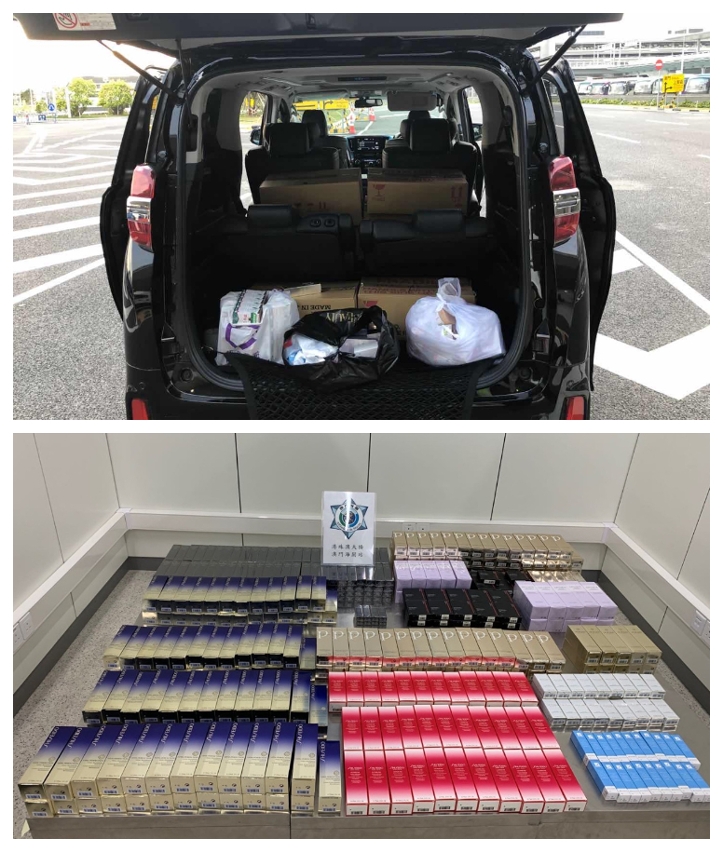 海关透过恒常及突击检查行动,利用「风险管理系统」及各类关检设备,分别在入境车道及旅客检查区查获多宗违法案件。于2月28日,港珠澳大桥澳门海关站海关人员根据「风险管理系统」预警分析,对1辆从香港入境的港澳两地牌车辆进行检查,于车箱内合共查获519件护肤品及化妆品。另于本月2及3日,海关人员透过X光机检查入境本澳旅客期间,先后发现5名入境人士的行李箱内藏可疑物品,经详细检查,查获平板电脑、多媒体机顶盒、修护复原蜜、手袋、皮包、耳机及波鞋等合共488件物品。