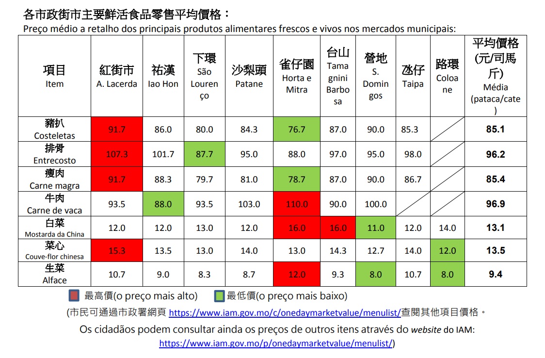 (市民可通过市政署网页https://www.iam.gov.mo/c/onedaymarketvalue/menulist/查阅其他项目价格。)