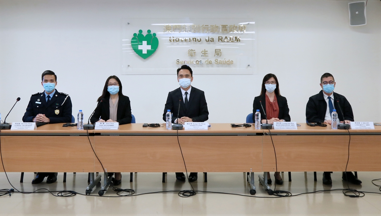 新型冠状病毒感染应变协调中心(下称应变协调中心)于今(10)日举行例行记者会,教肓暨青年局龚志明副局长、旅游局执照及监察厅陈露厅长、治安警察局行动及通讯处马超雄处长、疾病预防控制中心传染病梁亦好协调员、公共卫生临床中心余兆安协调员共同会见传媒。