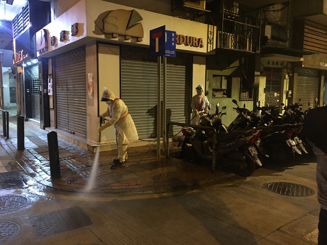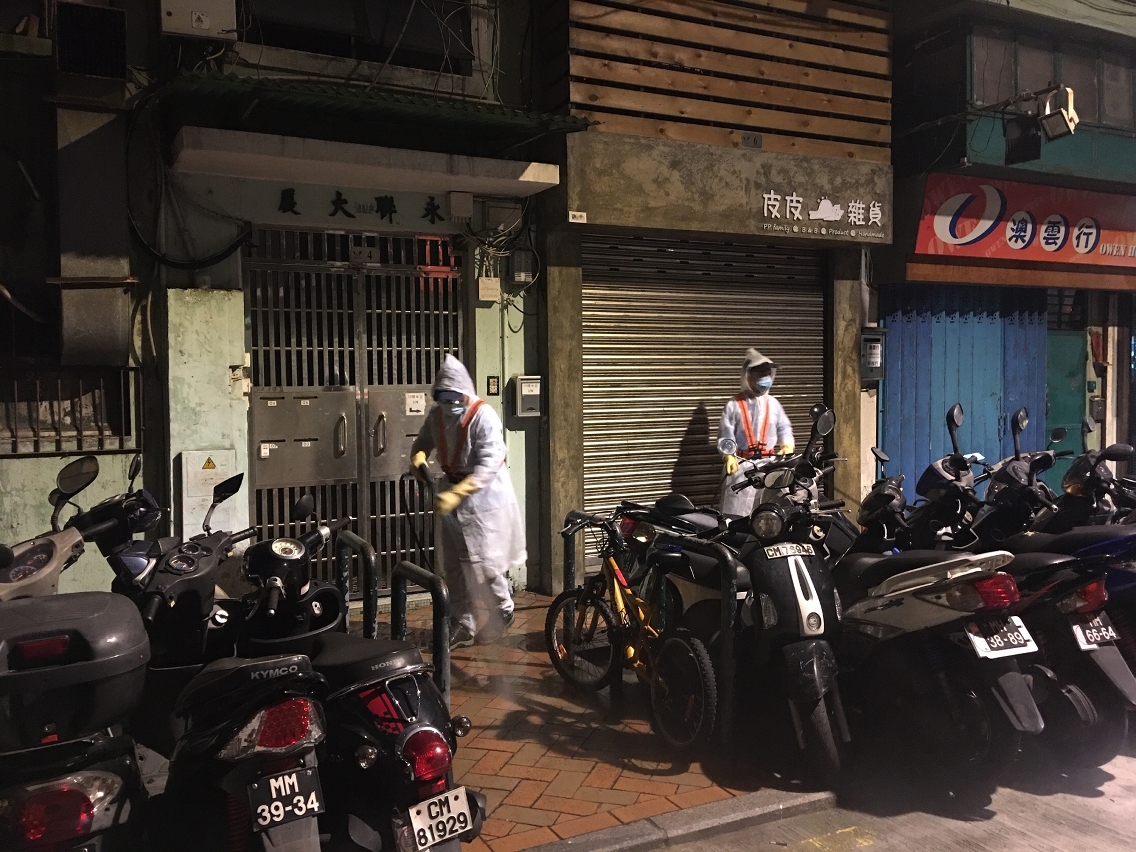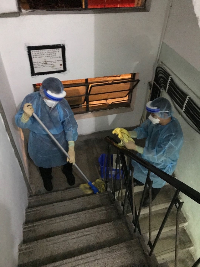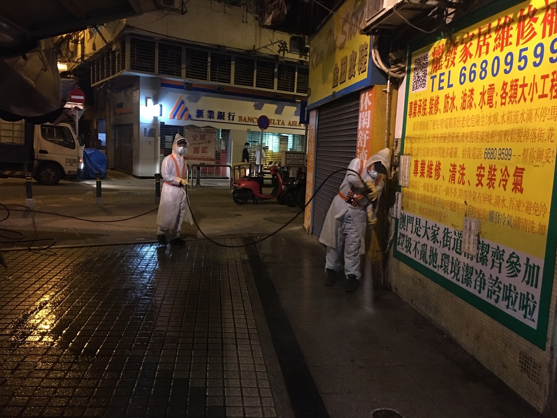 因应新型冠状病毒肺炎的最新情况并配合防控工作,市政署3月27日凌晨即时协调清洁专营公司及外判清洁加派人手,于本澳32及33例确诊病例居所周边街道、大厦门口及各楼层楼梯等公用空间进行大型清洁及消毒工作,尽力减低传染病传播的条件。
