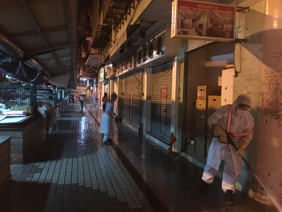 清洁人员于凌晨已到确诊患者居所及周边清洁消毒