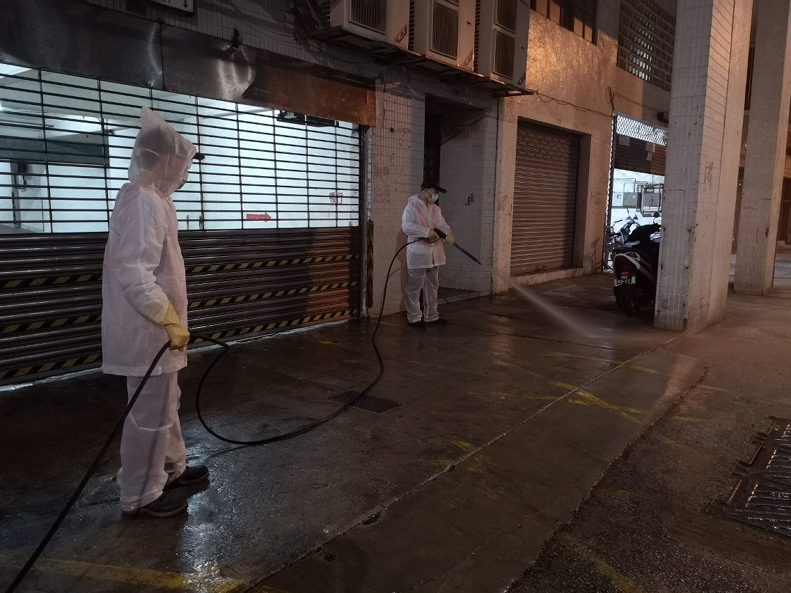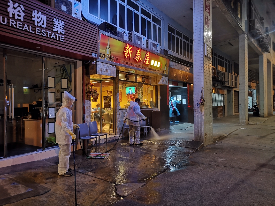 配合防控工作,市政署于三月二十七日晚上即时协调清洁专营公司及外判清洁加派人手,于本澳第三十四例确诊病例居所周边街道、大厦的入口大堂、升降机、居住楼层走廊等公用空间进行大型清洁及消毒工作,尽力减低传染病传播的条件。