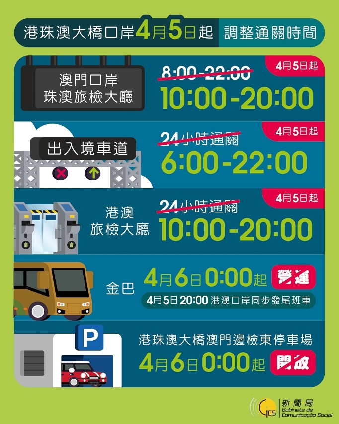 因应疫情,港珠澳大桥口岸4月5日起,调整通关时间。