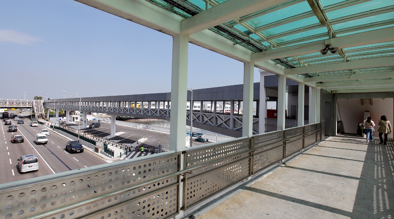 海港街和外港码头两座行人天桥横跨友谊大马路,两者相距约一百五十米,为方便市民和旅客通行,土地工务运输局在两座行人天桥之间建造连接桥,行人可直接使用连接桥往来两座天桥;工程还在海港街的现有行人天桥两侧上落点加装升降机,升降机内配备扶手、凸字按钮、低位操作面板、防撞措施及话音提示系统等设施,同时具备变频起动,即在较长时间没有人使用时自动暂停电源等节能功能。