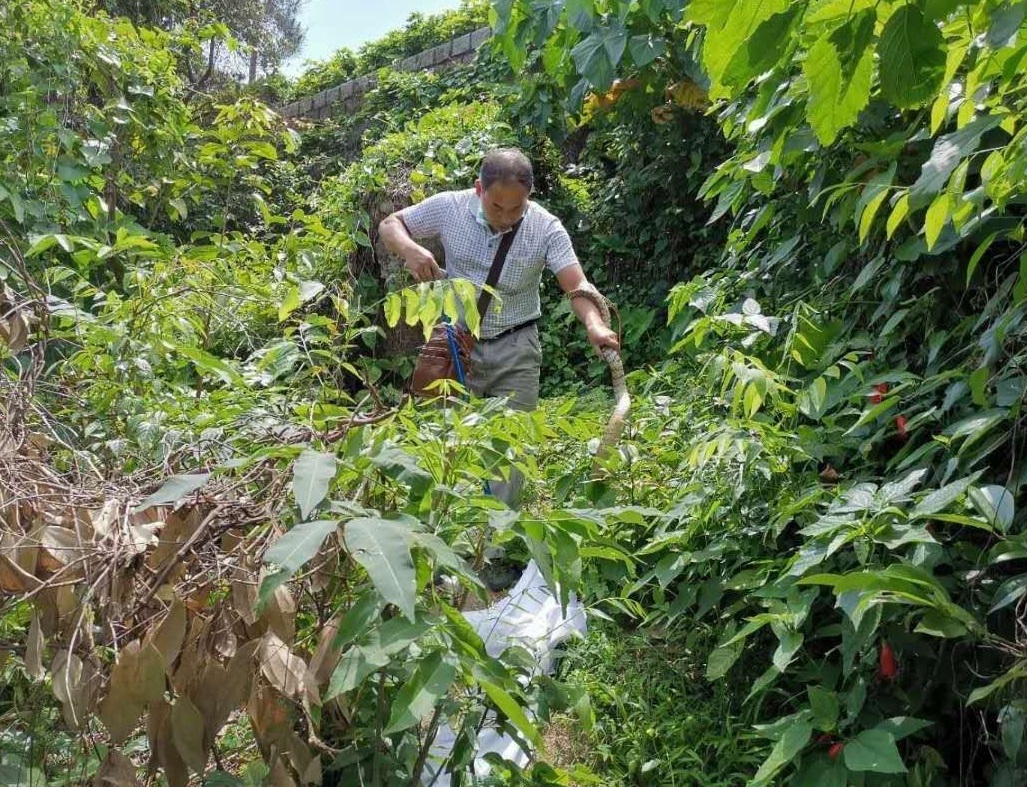 松山市政公园捕获滑鼠蛇