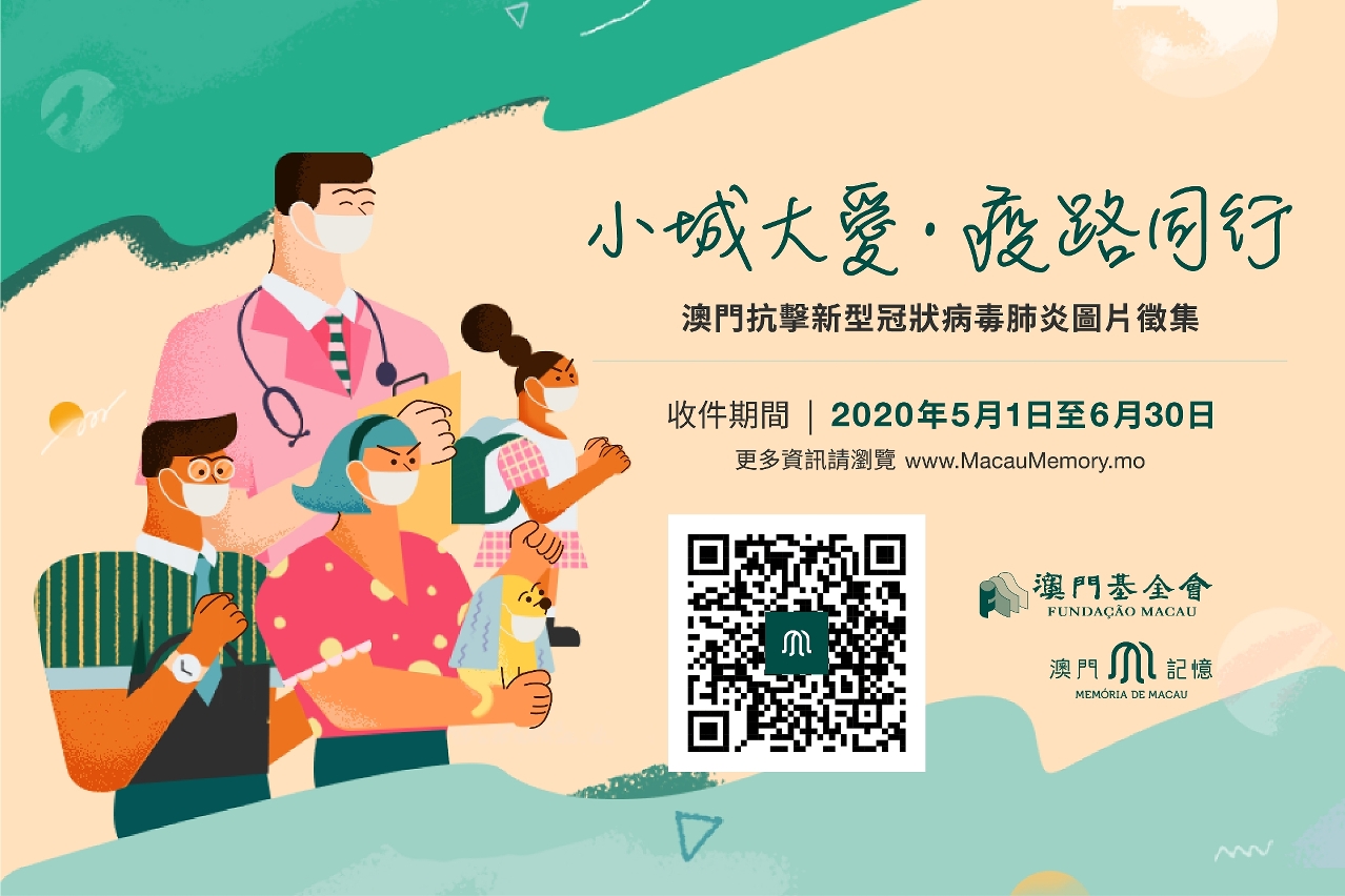 新型冠状病毒肺炎肆虐,澳门各界全力配合特区政府,以积极的心态面对“疫”境,充分体现了澳门市民守望相助、共克难关的精神与气魄。澳门基金会的“澳门记忆”文史网 (www.MacauMemory.mo) 特开展“小城大爱.疫路同行——澳门抗击新型冠状病毒肺炎图片征集”,以真实记录全城抗疫的珍贵瞬间,共同构建澳门市民众志成城、齐心抗疫的记忆。征集活动于网上进行,收件期由本年5月1日至6月30日,并设有多个奖项。