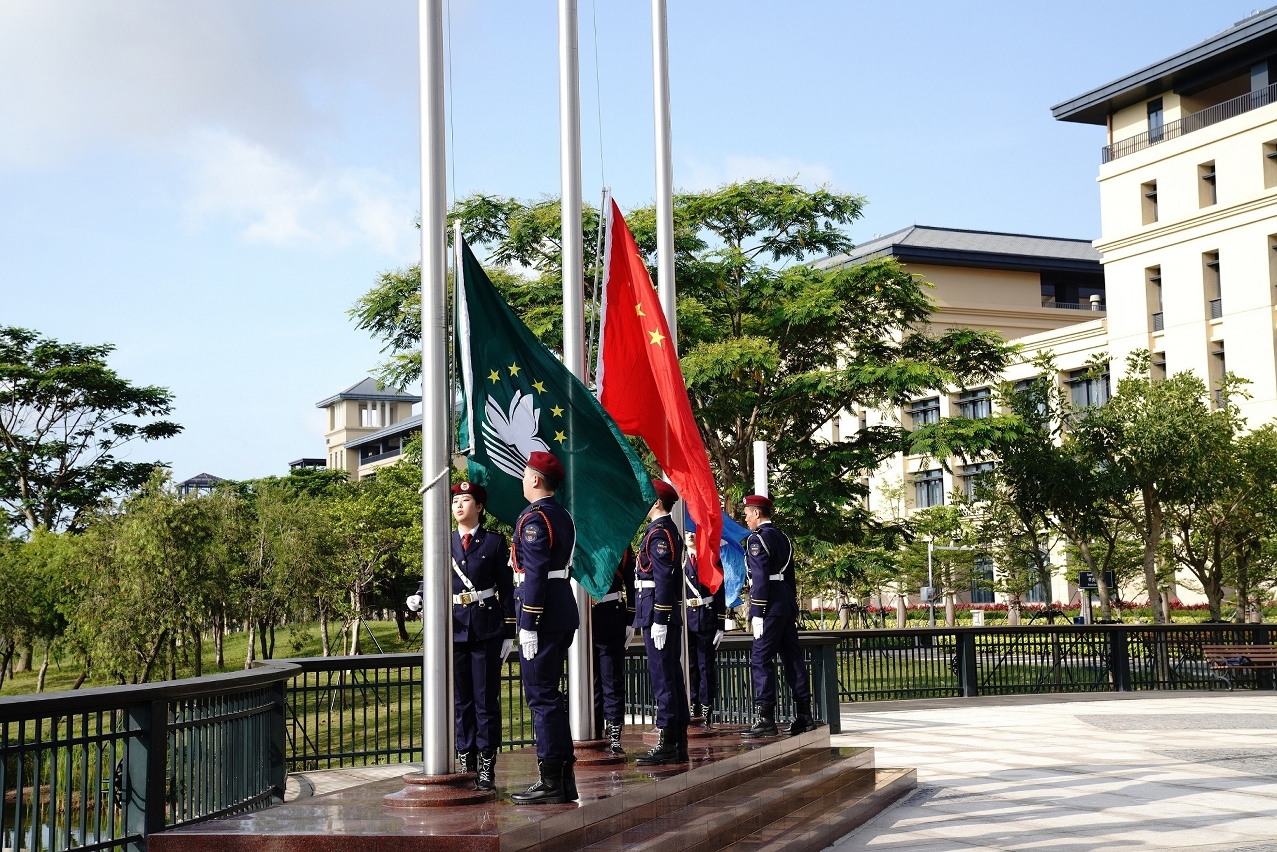 为弘扬五四精神,培养学生爱国爱澳的精神,并藉此向奋战疫情前线的英雄们致敬,澳门大学今(4)日举行“齐心抗疫•立志精进”五四青年节升旗仪式,六名在澳门的国旗仪仗队队员担任起此次特殊的升旗任务。为了减少人员聚集和方便大学万余师生参加,此次升旗仪式首次通过网络直播以“云端升旗礼”形式进行。这也是澳门高校唯一的五四青年节升旗仪式。