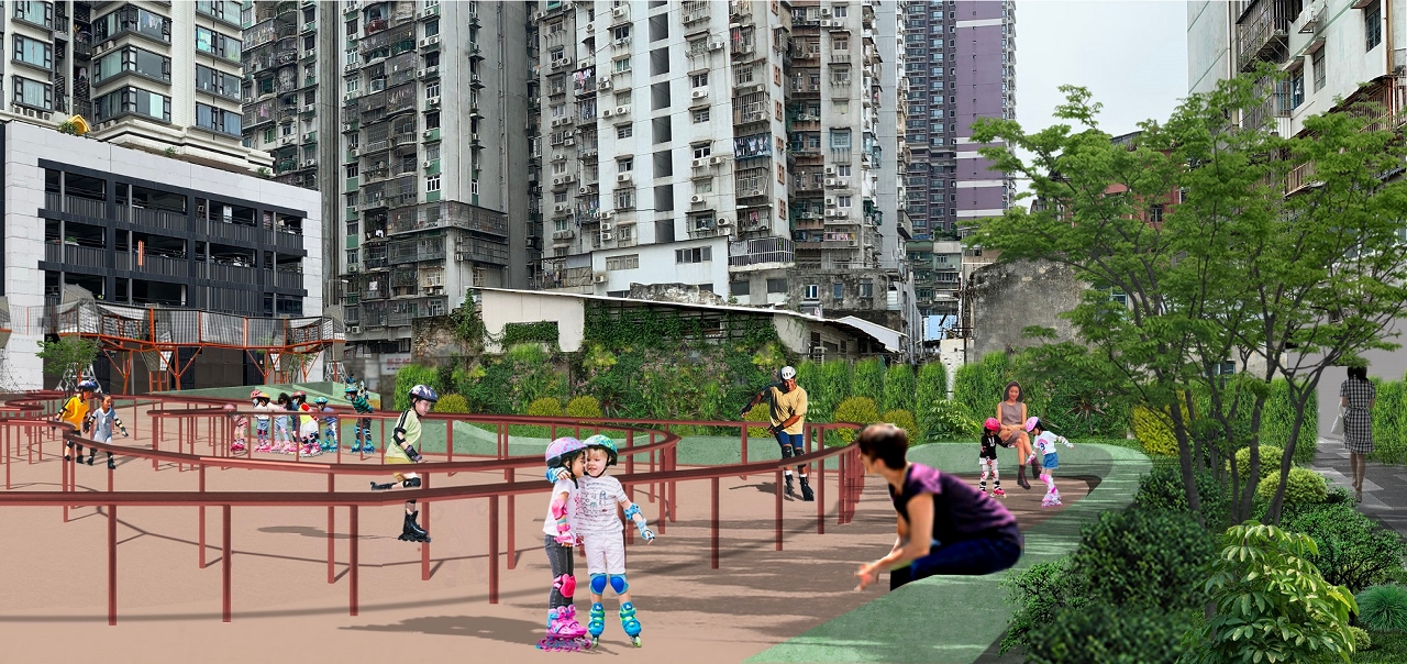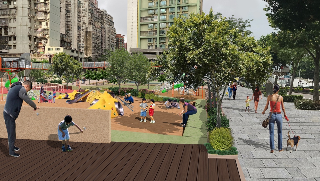 市政署冀善用现有土地资源,为北区市民创建多元优质的户外活动空间和多元的游乐设施及健身场地,计划把邻近林茂海边大马路之四幅闲置土地,以及与其相连的公共空间作整体规划及重整,并划分具规模的儿童游乐区和综合健身休憩区两大功能片区,整个规划总占地面积合共约六千二百二十平方米。在儿童游乐区中,会设有滚轴溜冰场、沙池玩乐区、具起伏坡度的游乐滑梯区,并建有儿童游乐设施、缓步径及多功能广场等,设计上会引入趣味性强及共融式游乐设施,为不同年龄层及需要的儿童提供交流及亲子活动场地。在综合健身休憩区中,将设篮球场及两个小型投篮练习区的「自由波地」,同时亦会设有不同强度及组合的健身器材,以供市民使用。为优化有关建设区域的步行环境及绿化景观,将一并重整周边的行人道,并结合该区域现有的树木扩大绿化范围,完善整体的绿化景观;同时设置具特色的桌椅及雨棚,营造与自然融合的遮阳及挡雨屏障,优化步行环境,创建雅致街道景观,为居民提供静态的休憩空间。
