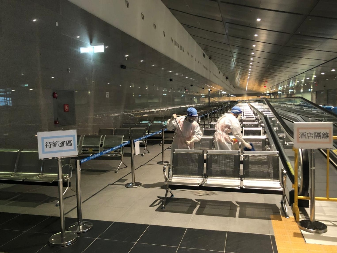 为加强防疫工作,船公司每次靠泊码头,在乘客全部登岸后,便会对船只进行全面的消毒工作。另外,当每一批经特别渡轮服务出入境人士使用及离开专用通道、检测区域、候船室和关检设施等空间后,码头清洁人员亦会彻底消毒相关区域和设施,确保码头的公共卫生。
