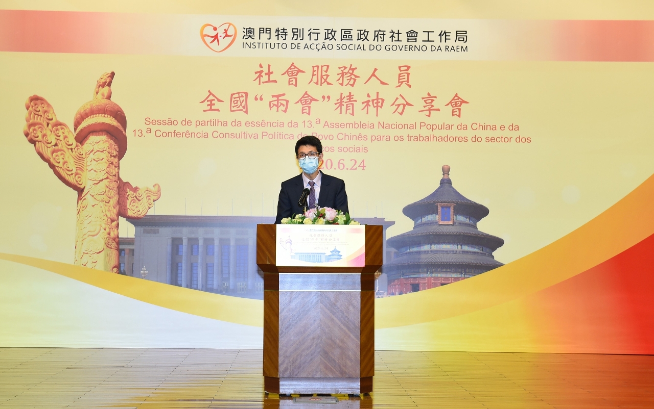 社工局韩卫局长感谢三位具有丰富经验的嘉宾分享“两会” 精神,有助社服同工更全面瞭解国家的发展大局。他指出新型冠状病毒肺炎疫情为国家及澳门带来巨大挑战,澳门在国家支持及广大居民齐心抗疫下,社会及居民生活正逐步恢复正常。他鼓励出席分享会的社服同工认真学习“两会”的重要内容,装备自己及把握机遇,积极融入粤港澳大湾区建设,与祖国共同发展。