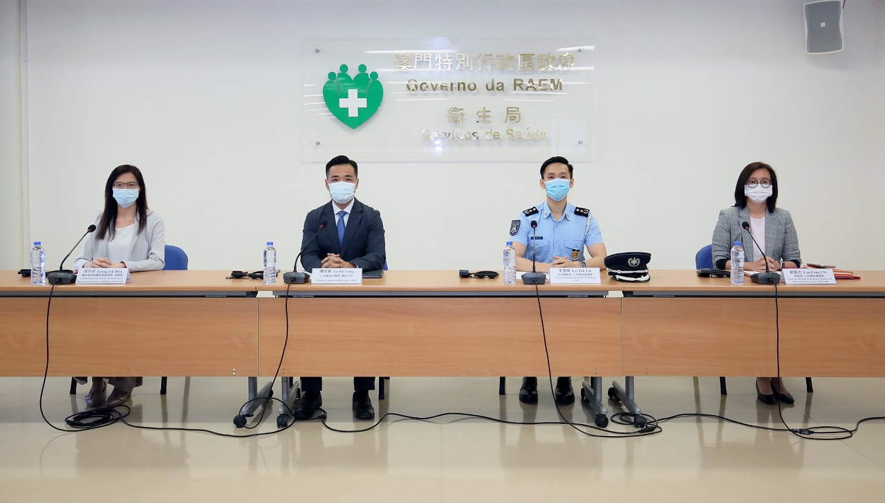 新型冠状病毒感染应变协调中心(下称应变协调中心)于今(15)日举行例行记者会,仁伯爵综合医院罗奕龙医务主任、治安警察局公共关系处李德辉处长、旅游局公共关系处刘凤池处长、疾病预防控制中心传染病防制暨疾病监测部梁亦好协调员共同会见传媒。