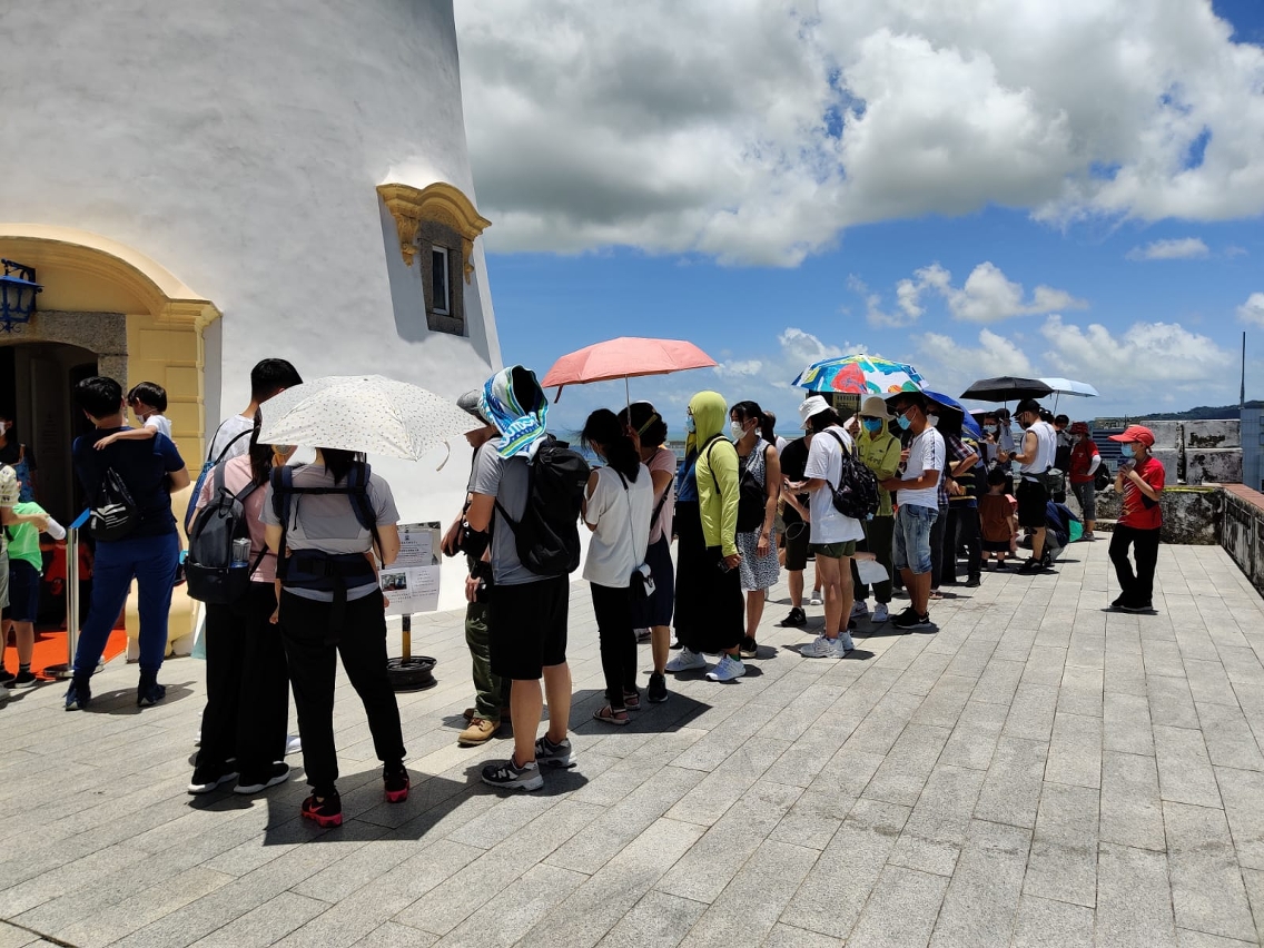 为庆祝7.18 “海事及水务局日”, 海事局每年都会在七月份举办一系列活动,今年东望洋灯塔如常在7月期间逢周六、日上午10时至下午时5时30分开放参观。过去三个周末已经有近6,000人次参观,最多市民参观的时间是下午四时后,曾录得一小时近200人次。因防疫需要,且由于灯塔内的空间有限和楼梯较为陡斜,工作人员会按情况实施人流控制措施,为免市民在塔外长时间等候和聚集,建议可选择人流较少的时段错峰参观灯塔。