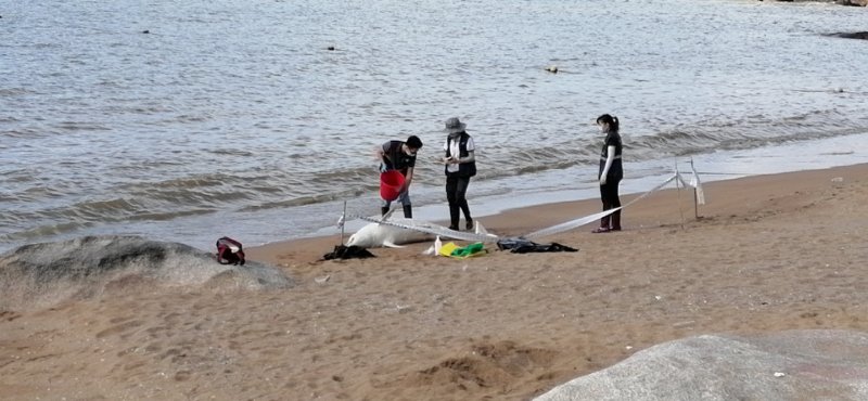 海事及水务局人员今早在竹湾海滩发现有一具海豚尸体冲上滩面。局方已通知市政署人员到场跟进。