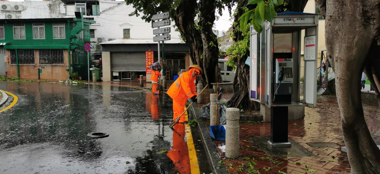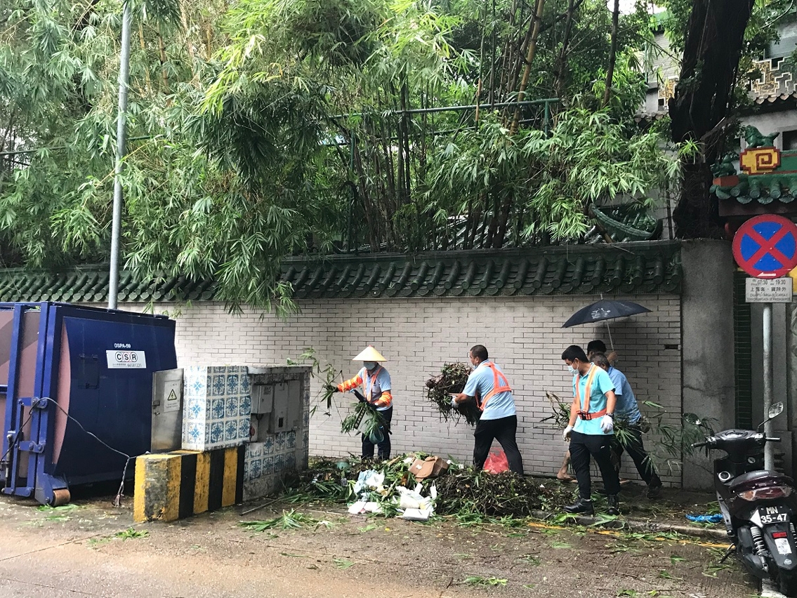 在垃圾清运方面,市政署协调清洁专营公司在悬挂八号风球前加紧街道垃圾收集工作;在八号风球除下后,清洁专营公司随即额外增加一倍运载力到各区收集垃圾及跟进清理街道工作,共派出16台垃圾车及7台压缩桶吊运车进行垃圾清运工作,截至下午二时所收集的垃圾量约104吨。