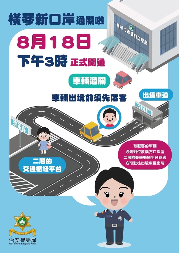 治安警察局8月19日通知,有关横琴新口岸的交通安排,内容如下: