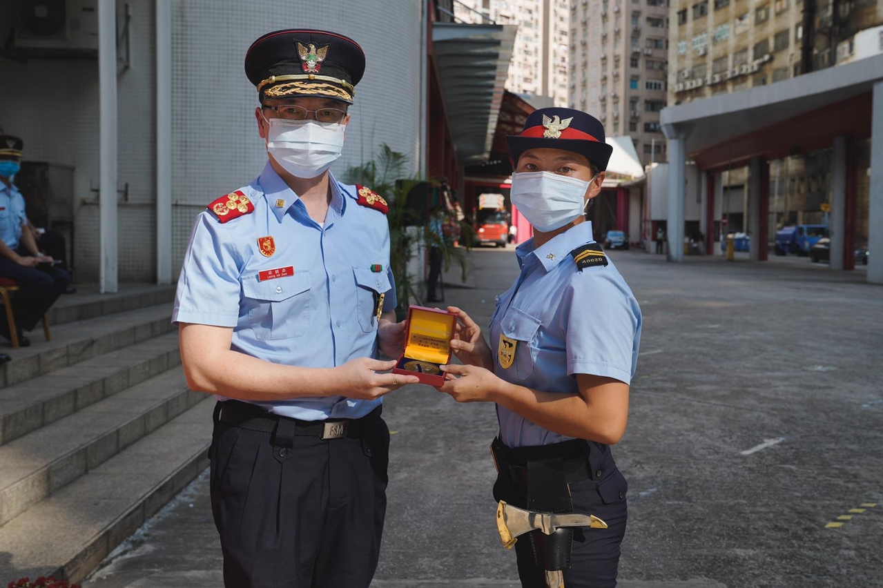 本届47名消防学员经过艰苦及严格的课程训练后,顺利通过各项考核,正式成为消防员,并由消防局局长 梁毓森、副局长 区耀荣及代副局长 邝逸富分别向成绩优异的学员颁发优异奬,其中在课程中获得第一名为学员李楚盈;第二名为学员张广峰;第三名为学员谈立宁。