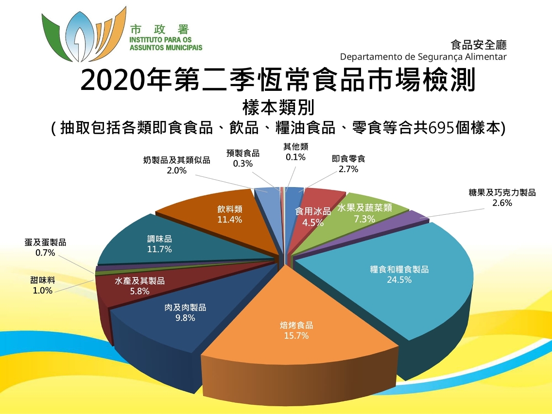 市政署持续透过恒常的食品监察及检测机制,评估市面售卖食品的风险及卫生状况,在本年第2季共抽取了695个食品样本进行检验,所有样本的检测结果均未见异常。