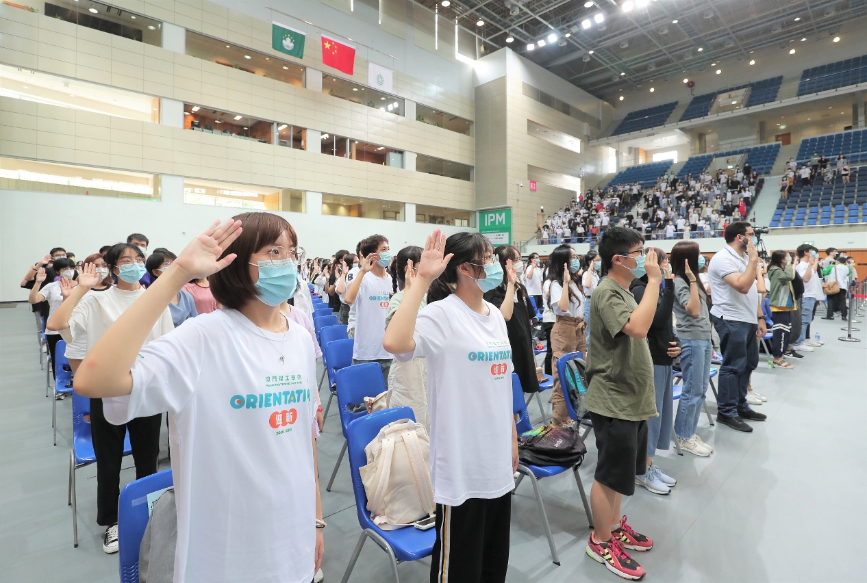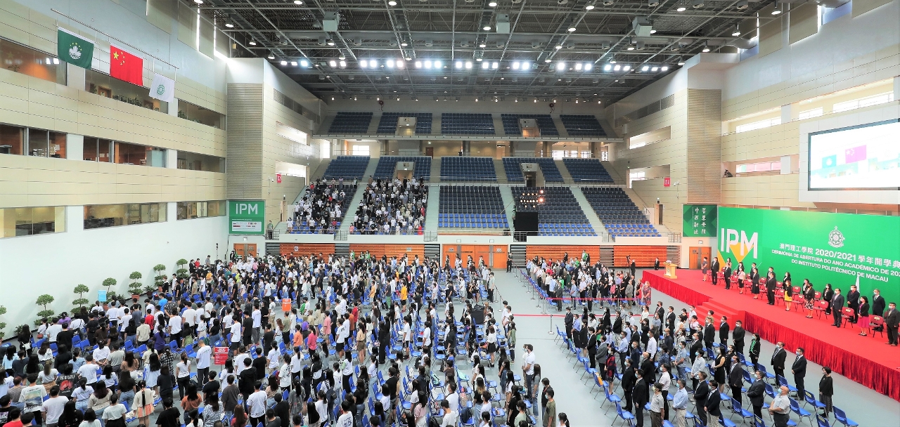 澳门理工学院2020/2021学年开学典礼于9月3日下午在澳门理工学院体育馆线上线下同步举行。开学典礼上升国旗及奏唱国歌,澳门理工学院今年迎来一千一百名来自澳门、大湾区、葡语国家及其他海内外本硕博课程新生。开学典礼弘扬爱国爱澳传统,理工师生员工见证全体新生以“理工心‧新生情”宣誓加入理工大家庭,场面热闹感人。