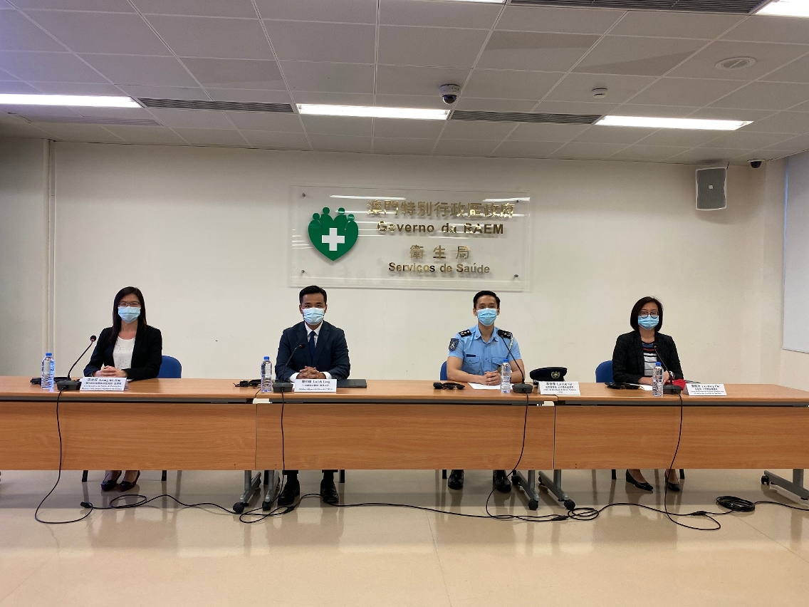 新型冠状病毒感染应变协调中心于今(14)日举行例行记者会,仁伯爵综合医院罗奕龙医务主任、治安警察局公共关系处李德辉处长、旅游局公共关系处刘凤池处长、疾病预防控制中心传染病防制暨疾病监测部梁亦好协调员共同会见传媒。