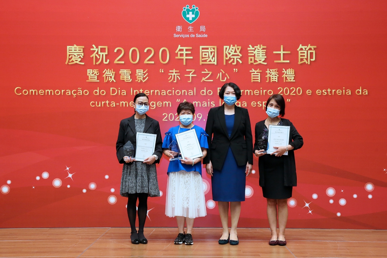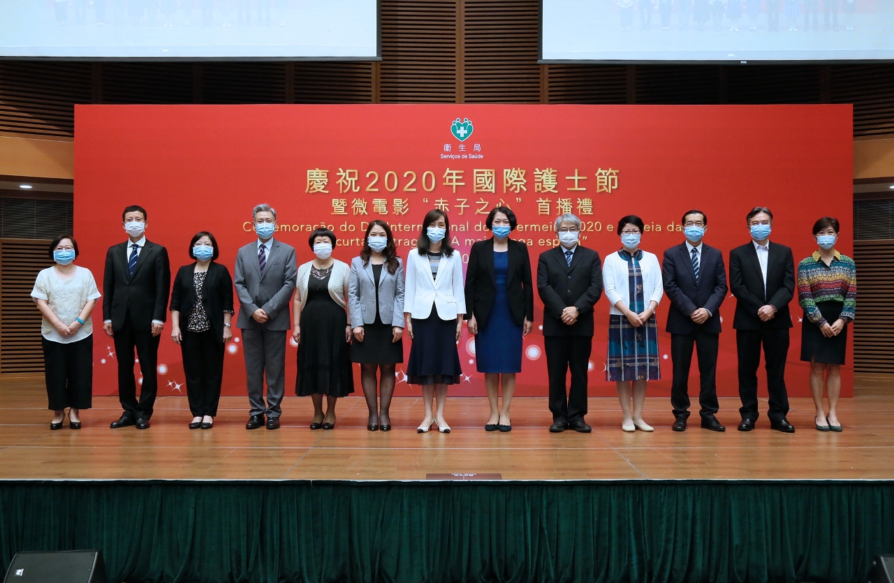 卫生局今(18日)日举行了「庆祝2020年国际护士节暨微电影“赤子之心”首播礼」,出席嘉宾包括社会文化司欧阳瑜司长、中央人民政府驻澳门特区联络办公室严植婵副主任、宣传文化部殷汝涛副部长、社会文化司司长办公室何钰珊主任、卫生局李展润局长、郭昌宇、郑成业副局长、陈永华代副局长、医务委员会吴培娟副主席、镜湖医院、科大医院、澳门理工学院、镜湖护理学院、医务委员会及医疗、护理专业团体代表等。