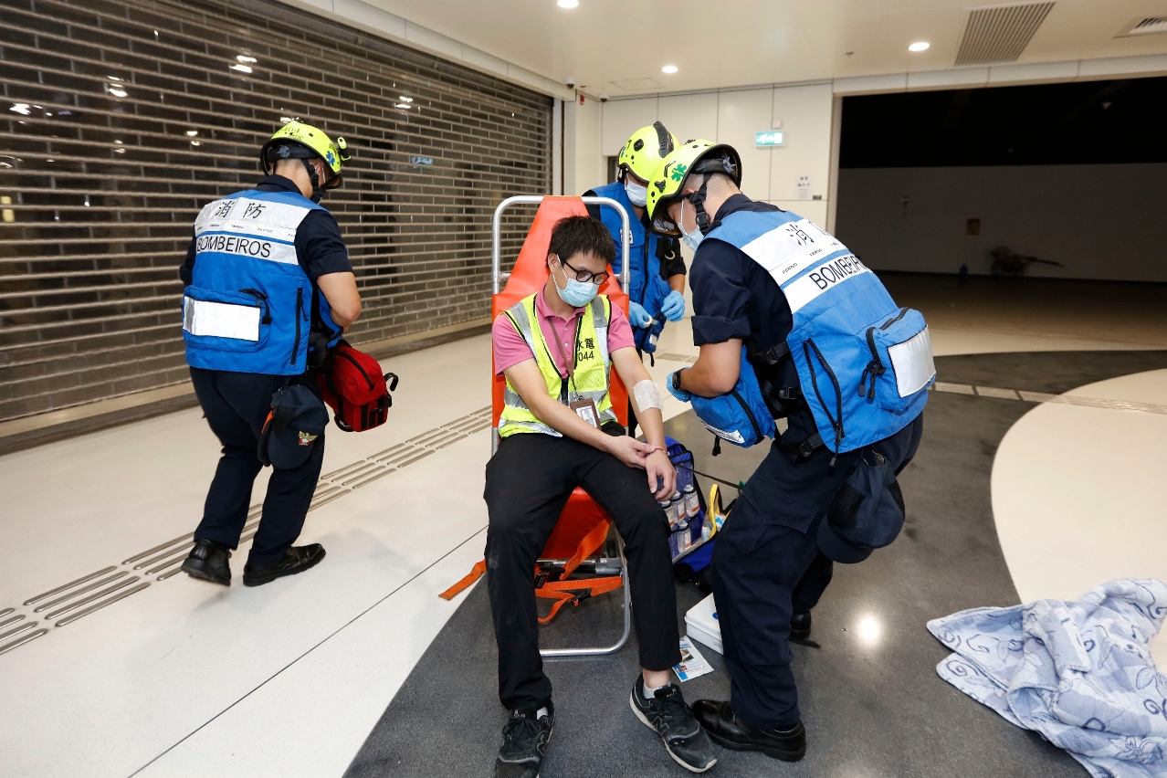 澳门保安部队事务局联同澳门海关、治安警察局、消防局于9月24日晚上10时30分在港珠澳大桥澳门边检大楼入境大堂地面层举行火警疏散联合演习,是次演习目的是测试在港珠澳大桥边检大楼发生火警时,各部门对突发事故的应变能力以及协调能力。