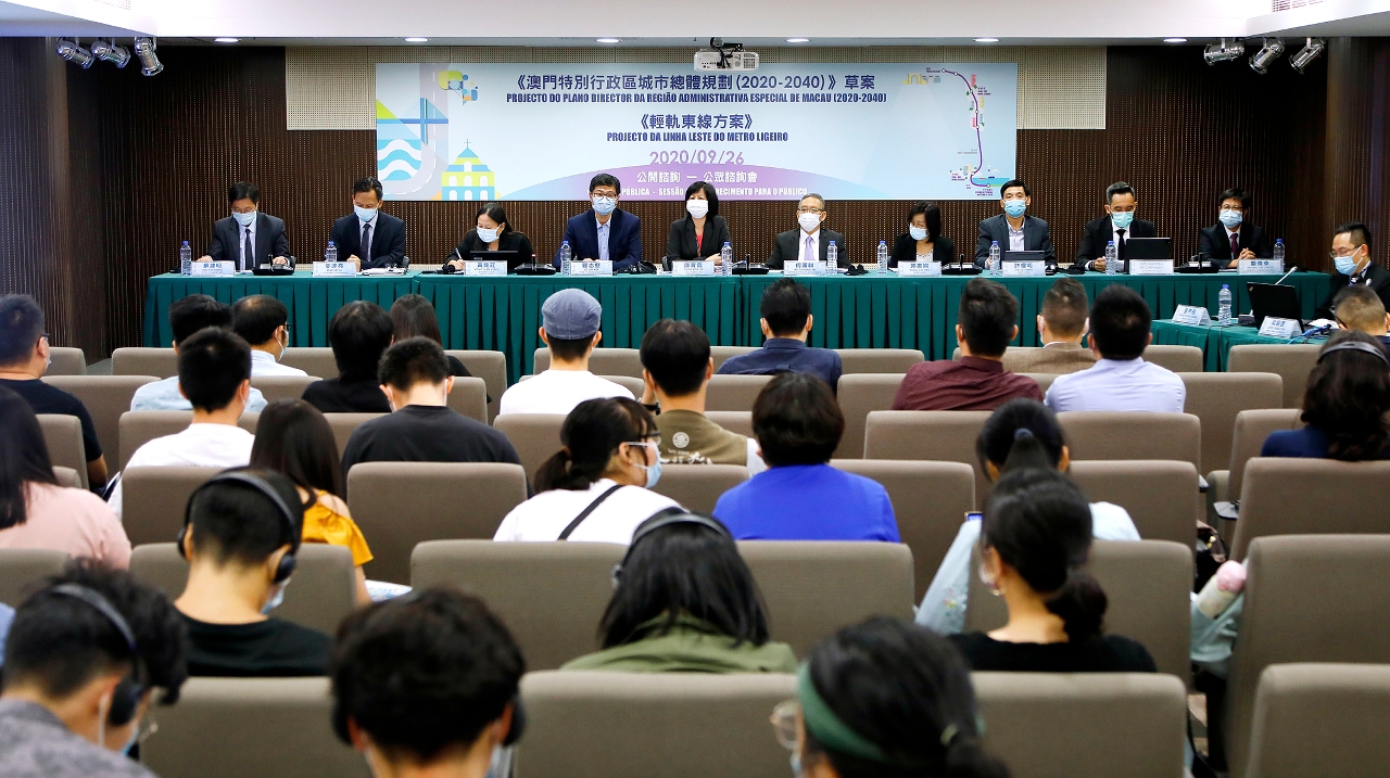 《澳门特别行政区城市总体规划(2020-2040)》草案及《轻轨东线方案》今(26)日于马交石炮台马路33号5楼多功能厅举行第二场公众咨询会,约100位市民参加,主要关注南、西湾湖一带景观维护、增加绿化及休憩空间、文化保育、商业区用地配合本澳经济适度多元发展,以及轻轨东线车站与社区的连接情况等。