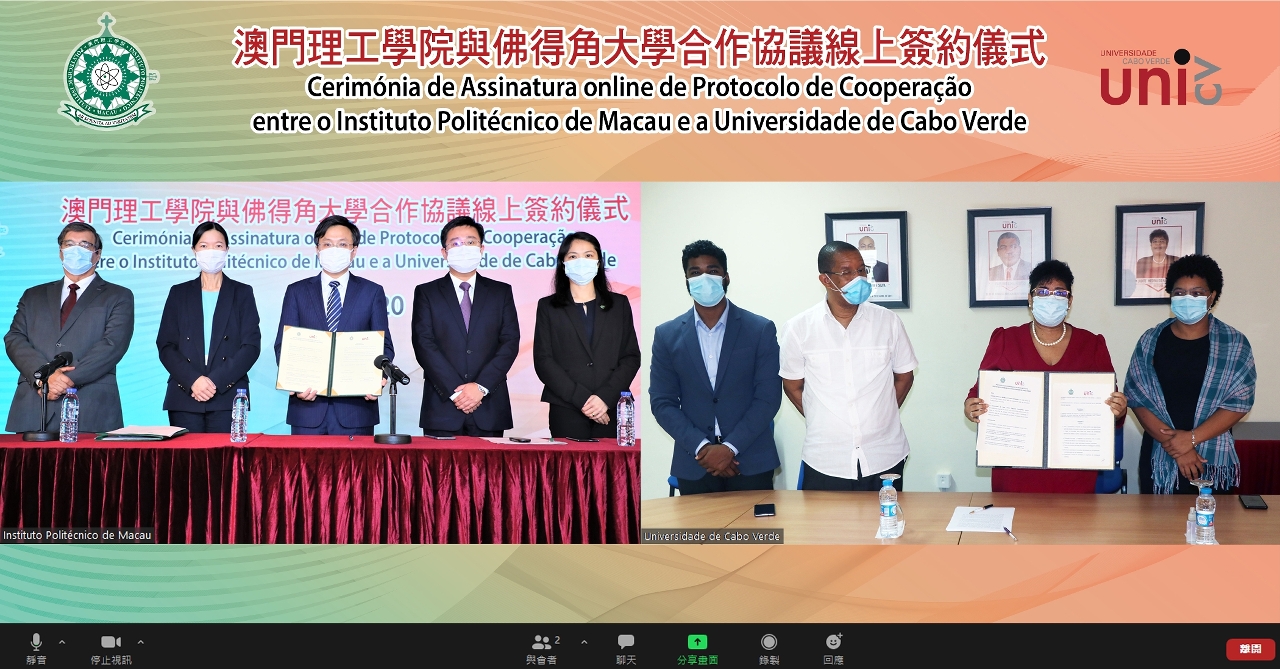 为进一步深化澳门中葡平台优势,发挥澳门连接中国与葡语系国家的纽带作用,加强中葡学术合作,助力澳门中葡双语人才培养基地建设,10月27日澳门理工学院与佛得角大学相聚云端,由理工学院院长严肇基及佛得角大学校长茱迪·娜斯文图(Judite Medina do Nascimento)代表双方签署合作协议。双方期望透过协议,在创新人才培养、深化学术交流、提升科研水平等领域开展合作,实现优势互补与资源共享,共同为“一带一路” 和粤港澳大湾区建设培养更多优秀人才。