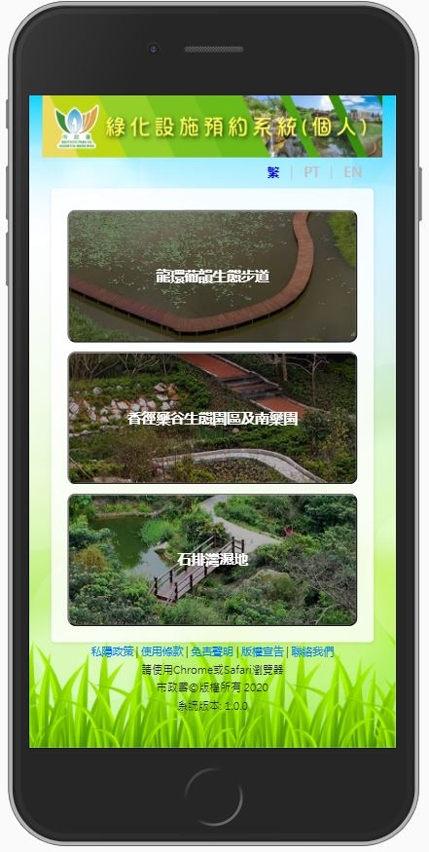 市政署持续优化绿化环境及设施,并致力保育动植物,为维持澳门的生物多样化而努力。在平衡有关生态保育与市民对绿化休憩设施的需求,市政署于十一月起以预约参观的方式,开放三个绿化设施,包括:香径药谷生态园区及南药园、石排湾湿地、龙环葡韵生态步道(东侧及北侧部份)。有兴趣者可由即日起,透过「绿化设施预约系统(个人)」https://app.iam.gov.mo/gfbooking预约上述三个设施。防疫常态化下,市民使用户外休闲场所,亦请配合卫生当局发出的防疫指引。