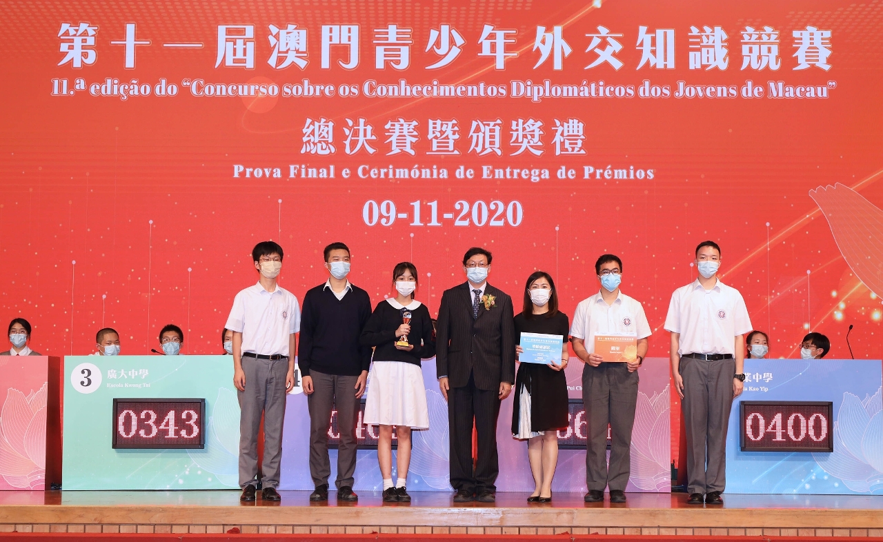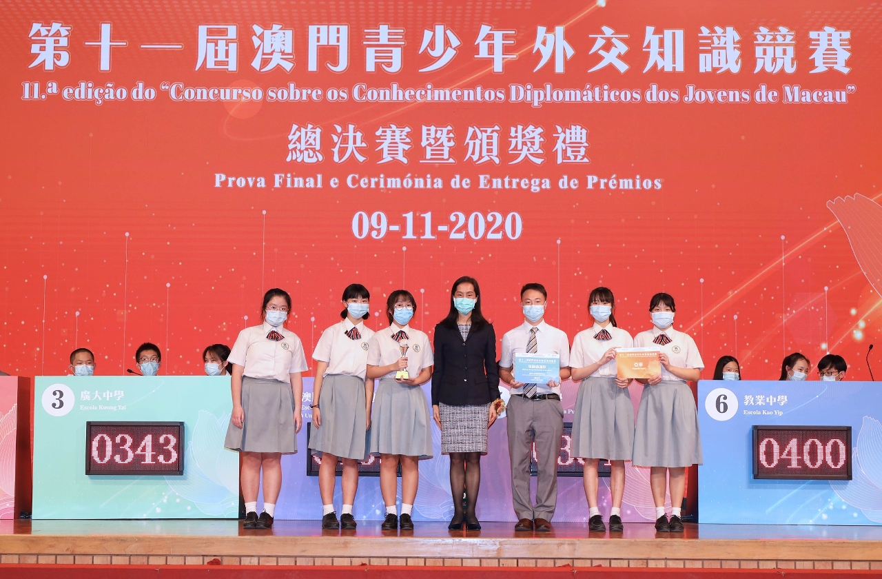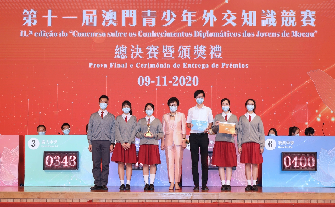 为了加深澳门学生对国家发展的认识,瞭解外交知识和国际形势,尤其新冠肺炎疫情对全球的威胁下,国家推动构建人类命运共同体的重要性,澳门特别行政区政府与中华人民共和国外交部驻澳门特别行政区特派员公署联合主办,教育暨青年局承办第十一届澳门青少年外交知识竞赛的总决赛暨颁奖礼在11月9日假教业中学成功举办,本学年吸引超过10,000名学生参加。