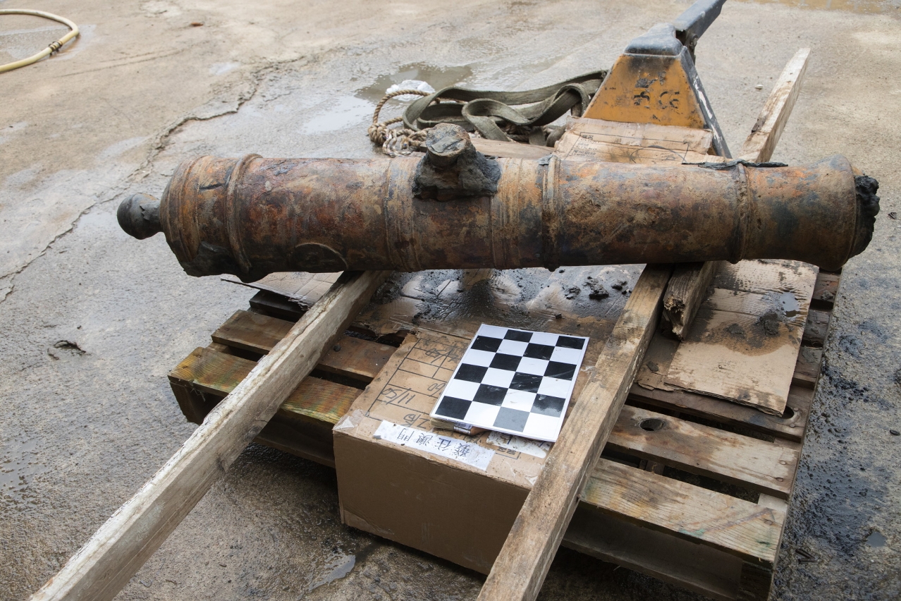 就在澳门银河酒店施工地盘发现之炮管,文化局完成对现场环境及该出土物状态等详细记录,包括对炮管出土物及其发现位置进行仪器定位及三维扫描。经测量后确认其长度约为1.45米,口径约为80亳米。